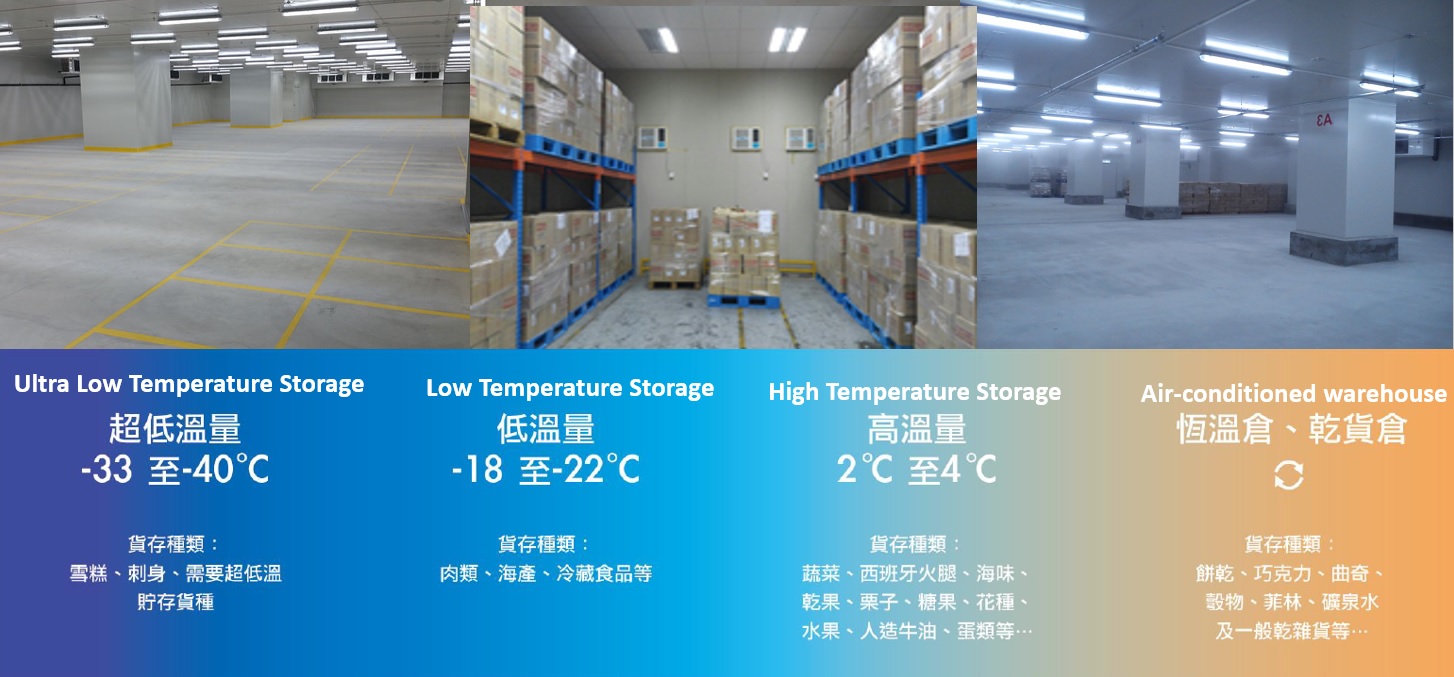 - 2、 為確保貨物新鮮及保存冷凍,本公司分「冷藏」「急凍」和「衡溫」 三種溫度層運